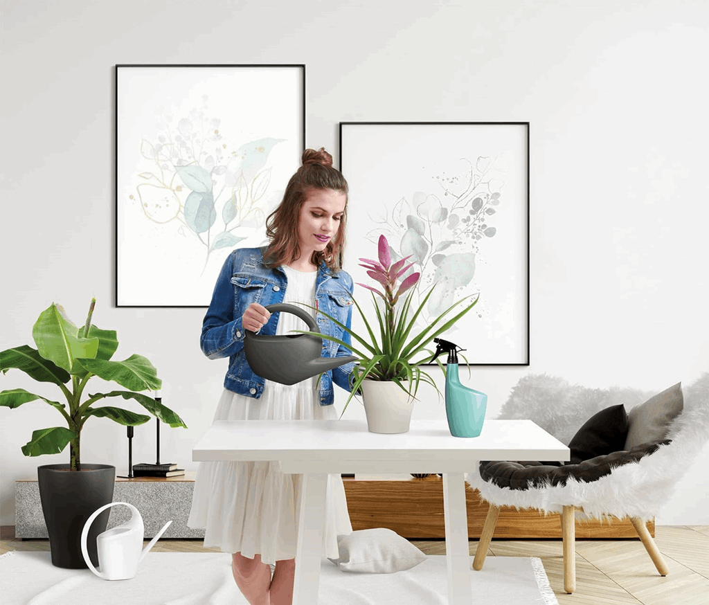 This 0.8-gallon ergonomic plastic watering can not only has a comfortable handle but also a beautiful design. Made of high-quality plastic in a matte look. Dimensions: width at top 15.83″ depth at top 4.53″ height 10.47″ watering can weights approximately .57 lbs. Capacity 0.8 gallons. Matching 23.5 oz. Sprayer is also available.
