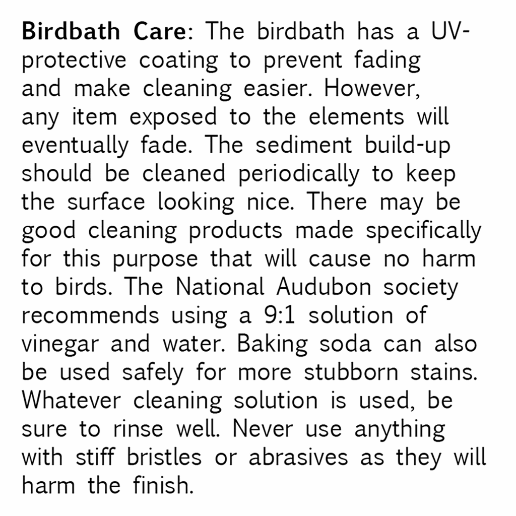 This Fiber Clay Birdbath Bowl is unlike anything you’ve ever seen! Because it is constructed of clay with plastic and fiber mixed in you will be pleasantly surprised to find this bowl is actually lightweight durable and impact resistant. It is recommended to store in an enclosed area or indoors during cold temperatures. The finish on the bowl provides UV protection as well as easy clean-up and reduces staining. Add elegance and function to any garden with ease. The perfect gift for the bird lover on your list! Made of 70% clay 25% plastic and 5% fiber. Stand not included. Pair with SKU 46-0753 or 46-0753BLK metal base. Due to dye lot changes actual product color may vary from the images shown. 19″D 5 lbs.