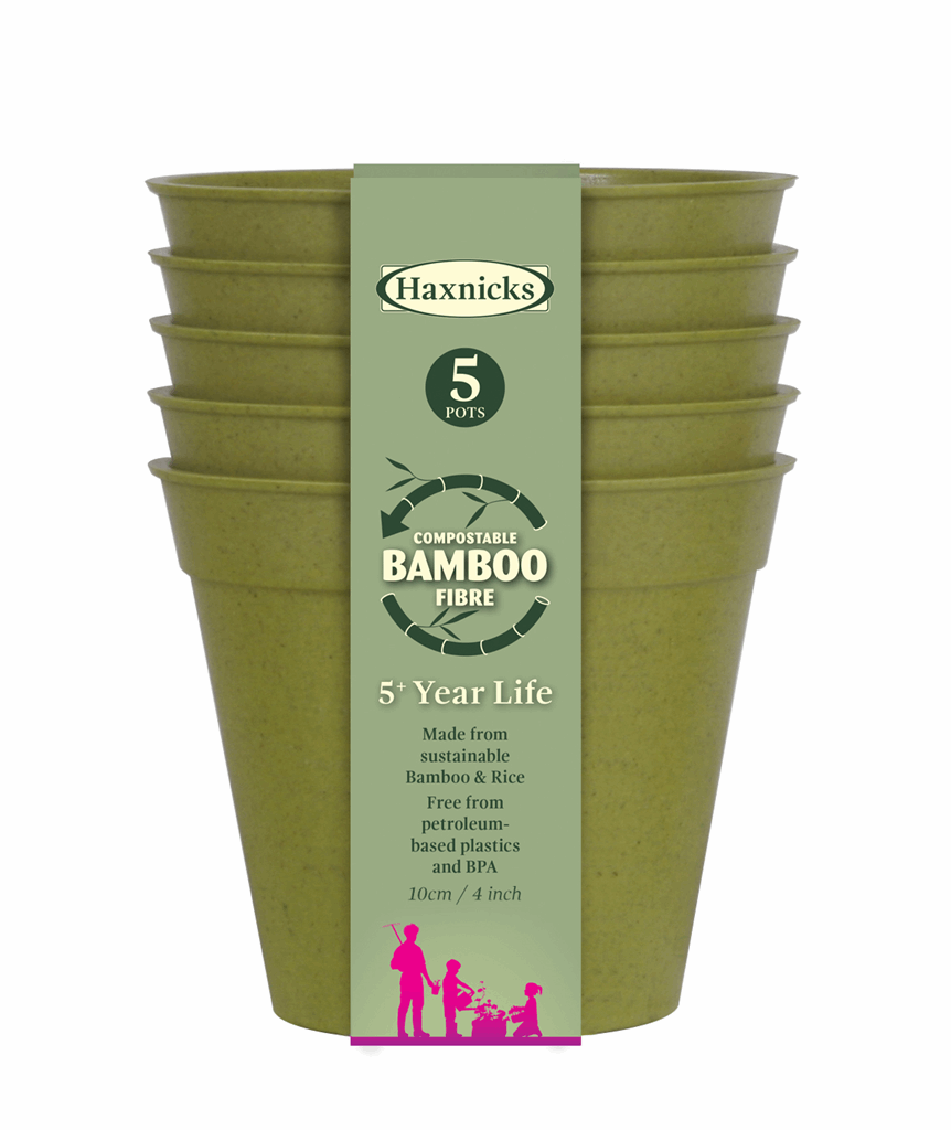 5 pack 4″ green bamboo pots made from bamboo fiber and rice starch. This material is free from petroleum-based plastics and BPA. Will last for 5+ years indoors or out making it a great alternative to single use pots. They are also biodegradable and will compost in 6-12 months. Perfect for growing herbs on a window sill or filling your greenhouse! Product: 4″W x 4″H 1.25lbs. Pack: 4″W x 6″H. Pack Size: 5
