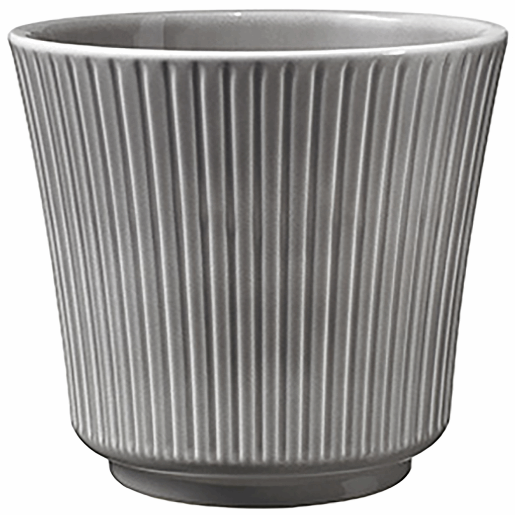 6.3″ Warm-Gray Delphi Indoor Ceramic Pot. 4 pots per tray must order in tray quantities. 100% waterproof. Made in Germany with 100% rainwater and natural native clay. No drainage holes so no worry about damage to furniture. Just drop in – no need to replant. 4 pots per tray 5.3 lb. tray weight