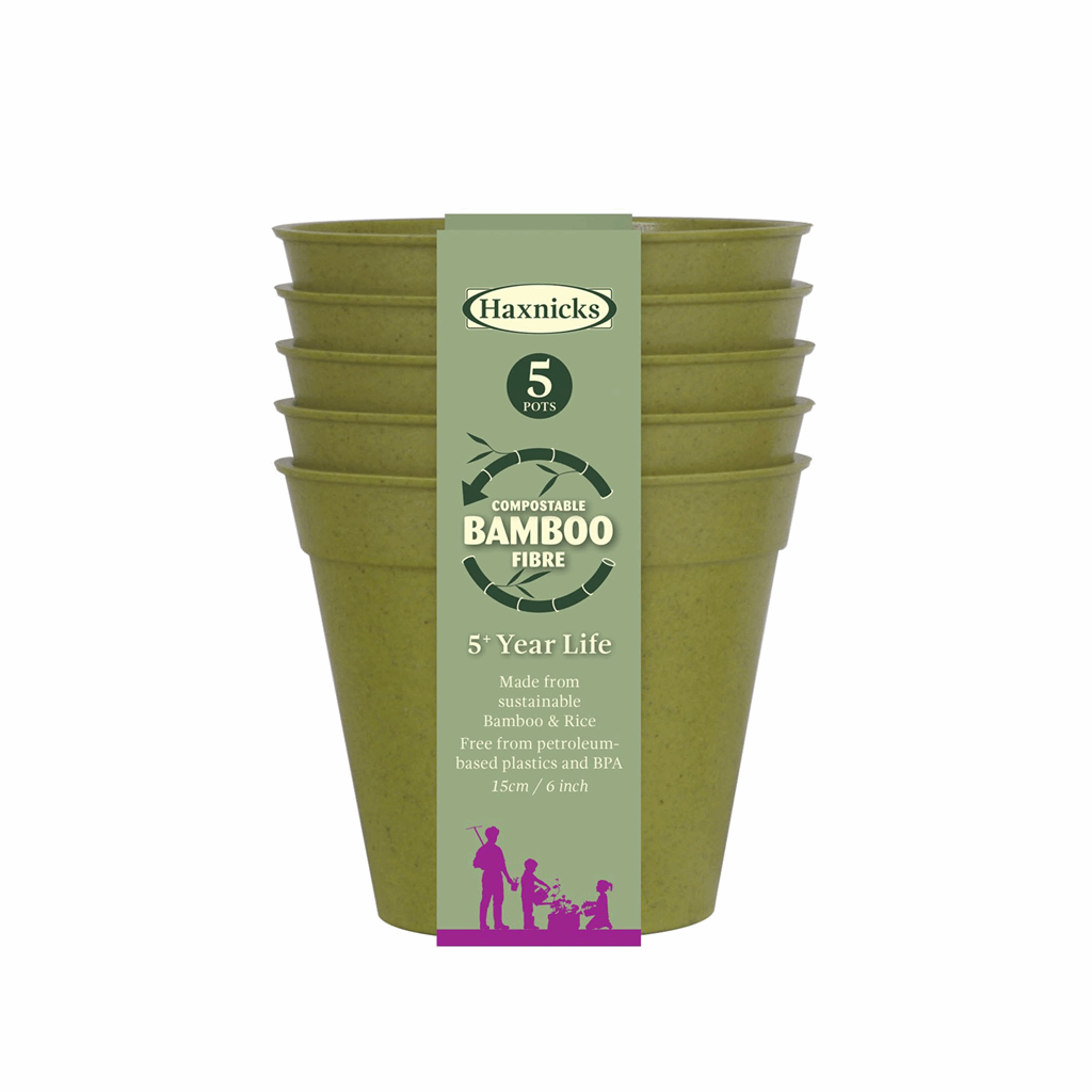 Great alternative to single use plastic pots the Bamboo pot is made from sustainable bamboo rice starch and resin made from naturally occurring organic compounds. Free from petroleum-based plastics and BPA. Add the 6″ saucer sold separately Item #50-1464. 5 per package use indoors or out. Perfect for growing herbs on a windowsill or filling your greenhouse. Durable and will last for 5 years or more. Biodegradable composts in 6-12 months. Breaking the products into small pieces before adding them to your compost heap will help speed up this process. Add the 6″ saucer sold separately Item #50-1464. Haxnicks located in the UK is known for its plant protection and growing products. Tierra Garden is the exclusive distributor in the U.S and is proud to offer their innovative quality products to you! Product: 6″W x 6″H 2lbs. Pack: 6″W x 8″H. Pack Size: 5