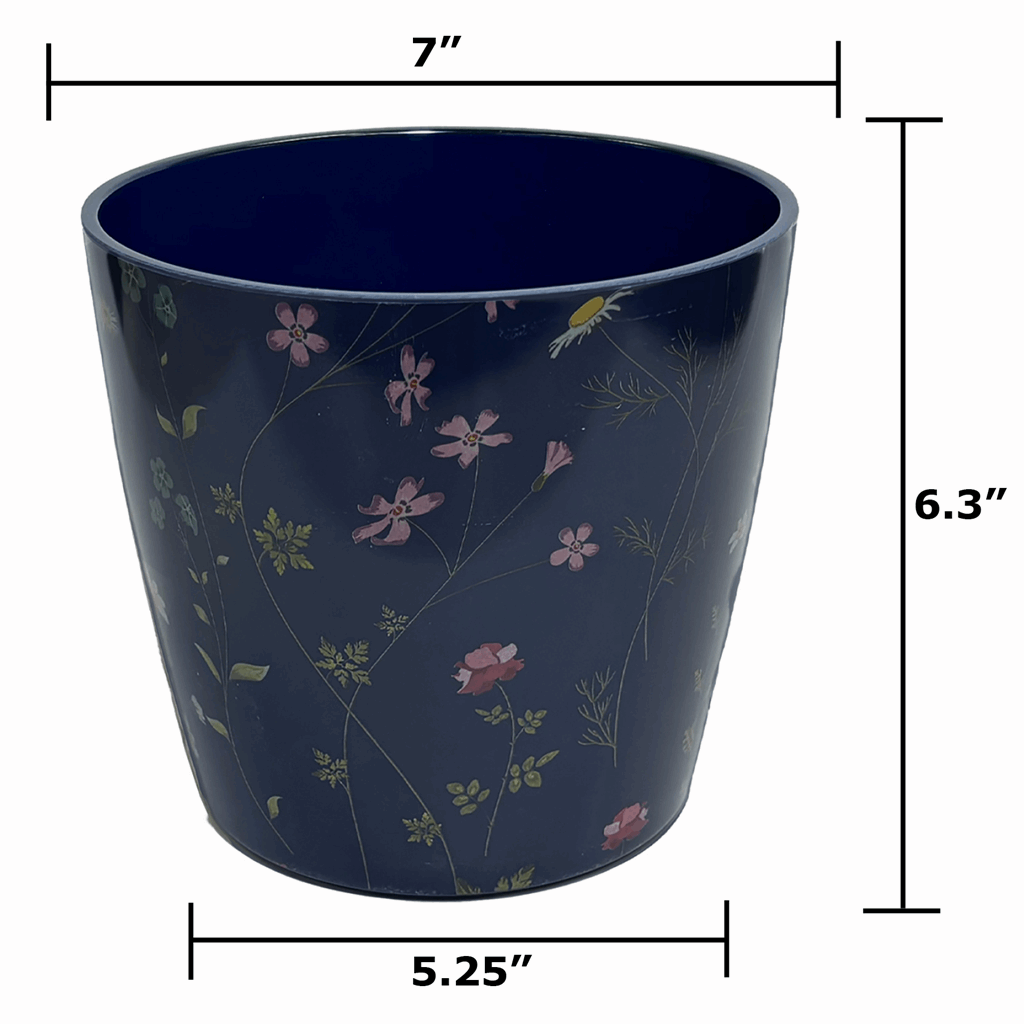 Worlds first Bamboo Fiber self-watering pot this 7″ Blue Wildflower Round self-watering pot is made from sustainable biodegradable all natural Bamboo Fiber and corn starch. Plants thrive in this natural Bamboo Fiber pot that is plastic free. The soil is better aerated by the unique water well in the base allowing better nutrient management helping the plants grow healthy and strong. These pots should be treated like ceramic suitable for use in hot or cold climates inside or outside. At initial planting water from the top until water is just below the overflow. Then periodically check the water level in the base and add water to the well from the bottom access or from the top of the pot. The soil draws water up from the well as needed using capillary action just like a wick. No more overwatering strong healthy plants is the result! Everyone gets a “green thumb” growing in bamboo pots and just by keeping water in the well! When you are finished with your pot just break it up and put into your compost bin. Over time the material will degrade back to nature.
