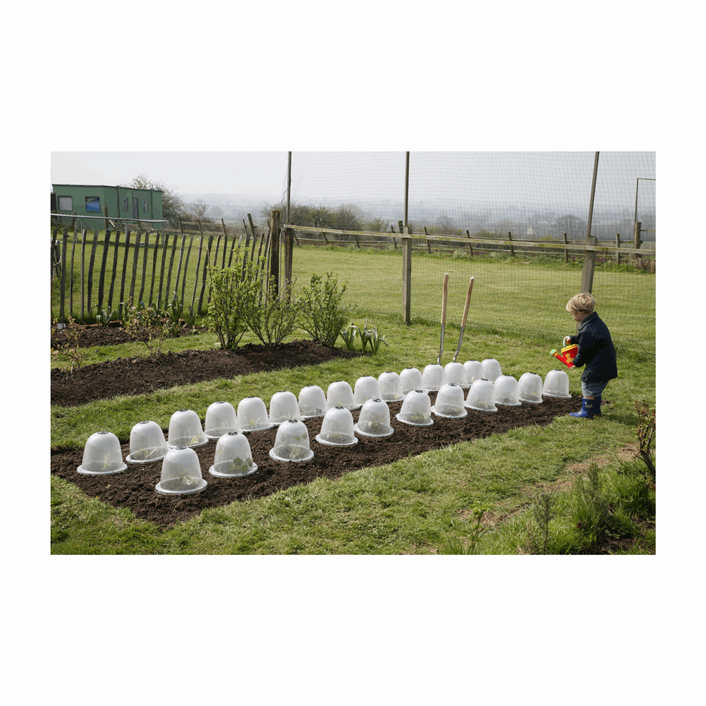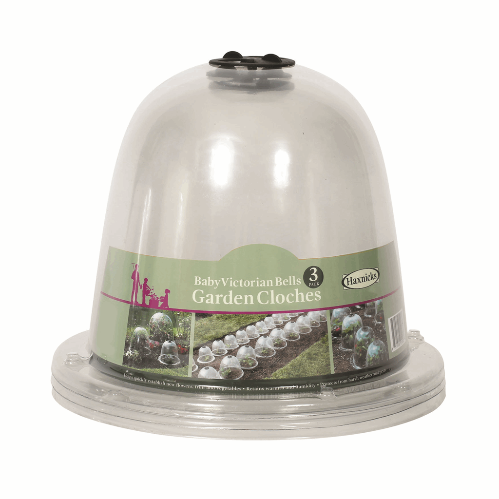 Baby Victorian Bells are ideal for protecting young plants & seedlings and establishing early salad crops. They conserve warmth and direct rainwater and moisture into the surrounding soil. Adjustable air vent for easy ventilation and humidity control. For nearly 20 years the Haxnicks company has been designing and manufacturing innnovative garden care and plant protection products for their customers in England. Tierra Garden is proud to offer this distinctive line in the United States! Product: 9.6″D x 7.9″H 0.5lbs. Pack: 9.8″D x 10.6″H. Pack Size: 3
