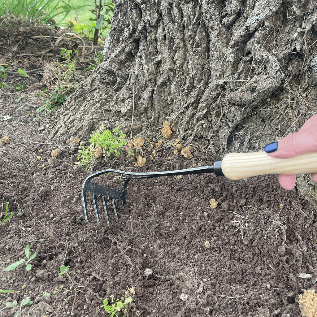 Bio hand rake. Light weight rake Perfect for raised bed gardening. Perfect for the more elderly gardeners. European design. Head: 3″W X 3.5″D Total: 13″L 0.4lbs