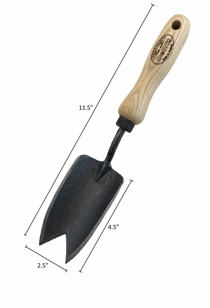 DeWit 2-Pointed Trowel works like a standard trowel but the 2 sharp points break up soil quickly and easily. Great for tough soil and clay. Made from hardened boron steel and heat-treated for strength it is the perfect gardening companion. Made for smaller hands it’s a popular choice for women or seniors! Handle is made of hardwood ash and harvested from environmentally responsible FSC-certified forests. Manufactured in Holland this tool is guaranteed a lifetime! Head: 4.5″L x 2.5″W Total: 11.5″L 0.4 lbs