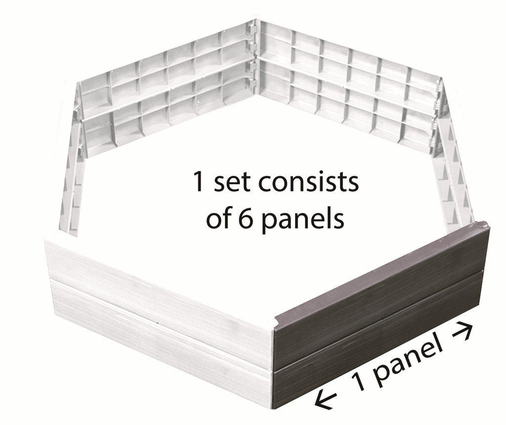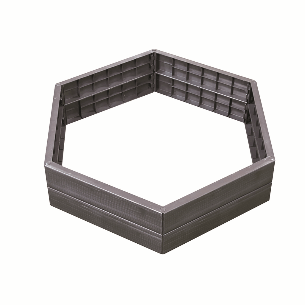 Graf Ergo Raised Bed garden bed system is ideal for those with limited space to easily plant their own herbs veggies and flowers. Raised garden beds have many advantages over conventional growing: early harvesting higher yields and more efficient ergonomic gardening to alleviate back strain. Made from UV-protected recycled polypropylene with decorative wood texture on surface it is more attractive than the plastic versions previously available and more practical than those made of wood. Moisture-resistant and maintenance free! The basic set is 6 panels each 22 inches long assembled into a hexagon-shape. Height can be increased by stacking additional sets to reach desired height increments of 10 inches added to height with each set. One set holds 52 gallons of soil. Easy to assemble no tools required. Made in Germany 5 year warranty. Additional panels can be added to extend length of bed sold separately Item #645101. 37.5″W x 10 ” H 9lbs 52 Gal