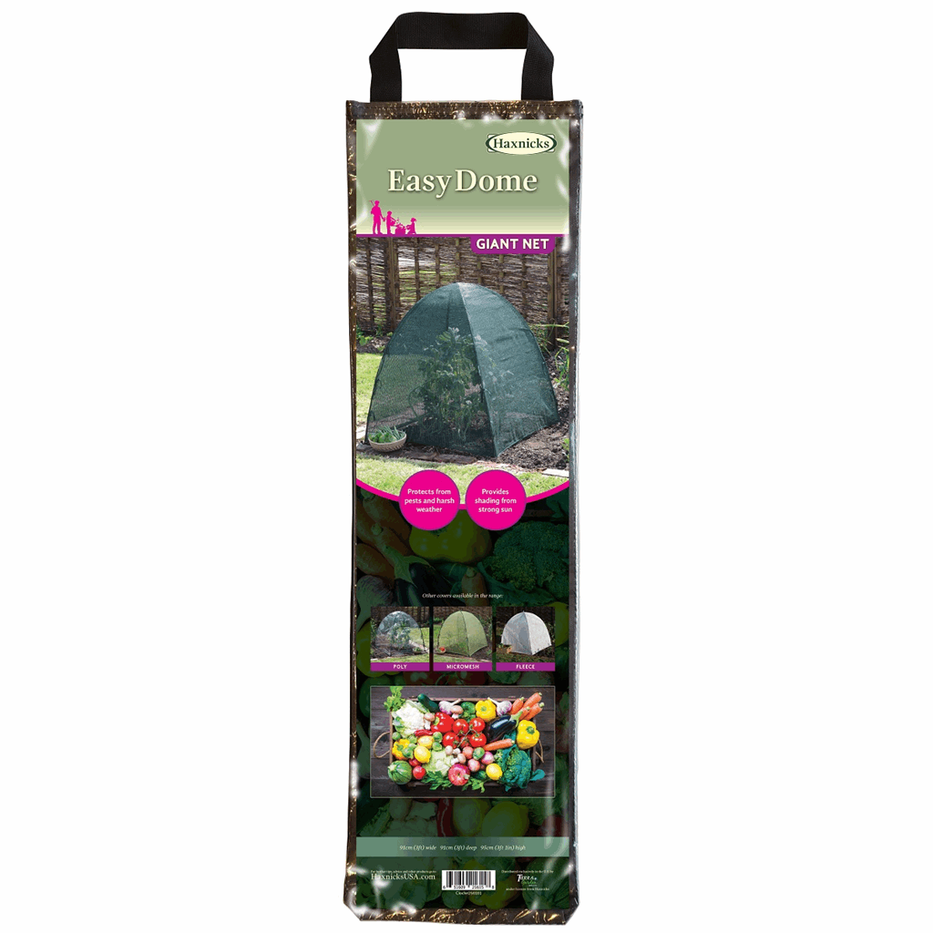 Offers shade protection from intense sunlight preserves moisture and safeguards against insects birds and animals. Constructed from UV-stabilized high-density 5mm mesh polyethylene with rust-resistant galvanized steel hoops. Comes with ground pegs. Dimensions: 36″L x 36″W x 37″H 2.5lb