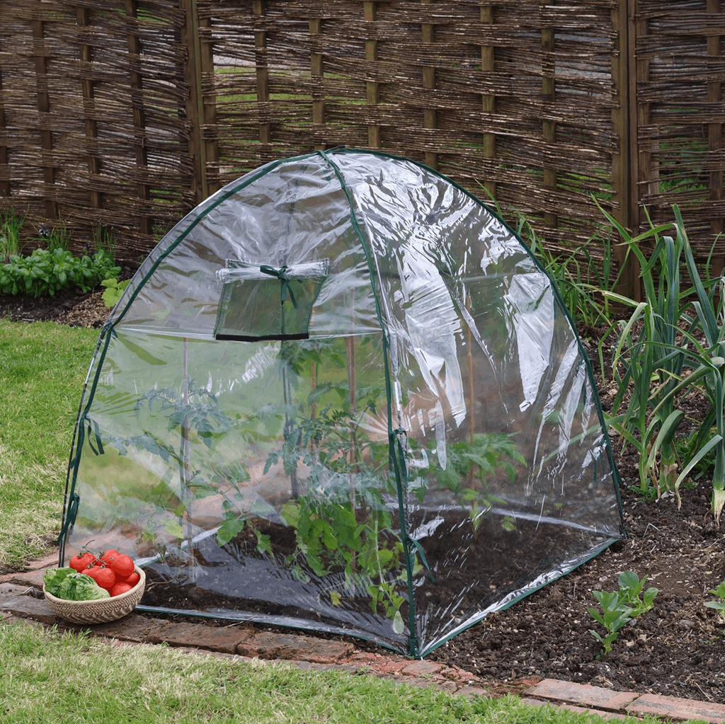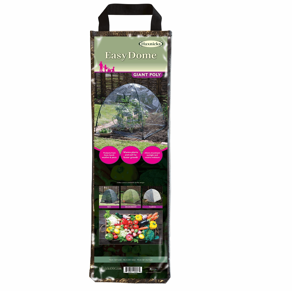 Warms the soil for earlier planting and forms a complete barrier to retain warmth and humidity. It offers protection from severe weather animals and pests. It is constructed from UV-stabilized 150-micron heavy-duty polyethylene and rust-proof galvanized steel hoops. Ground pegs are included. Dimensions: 36″L x 36″W x 36″H 2.5lbs