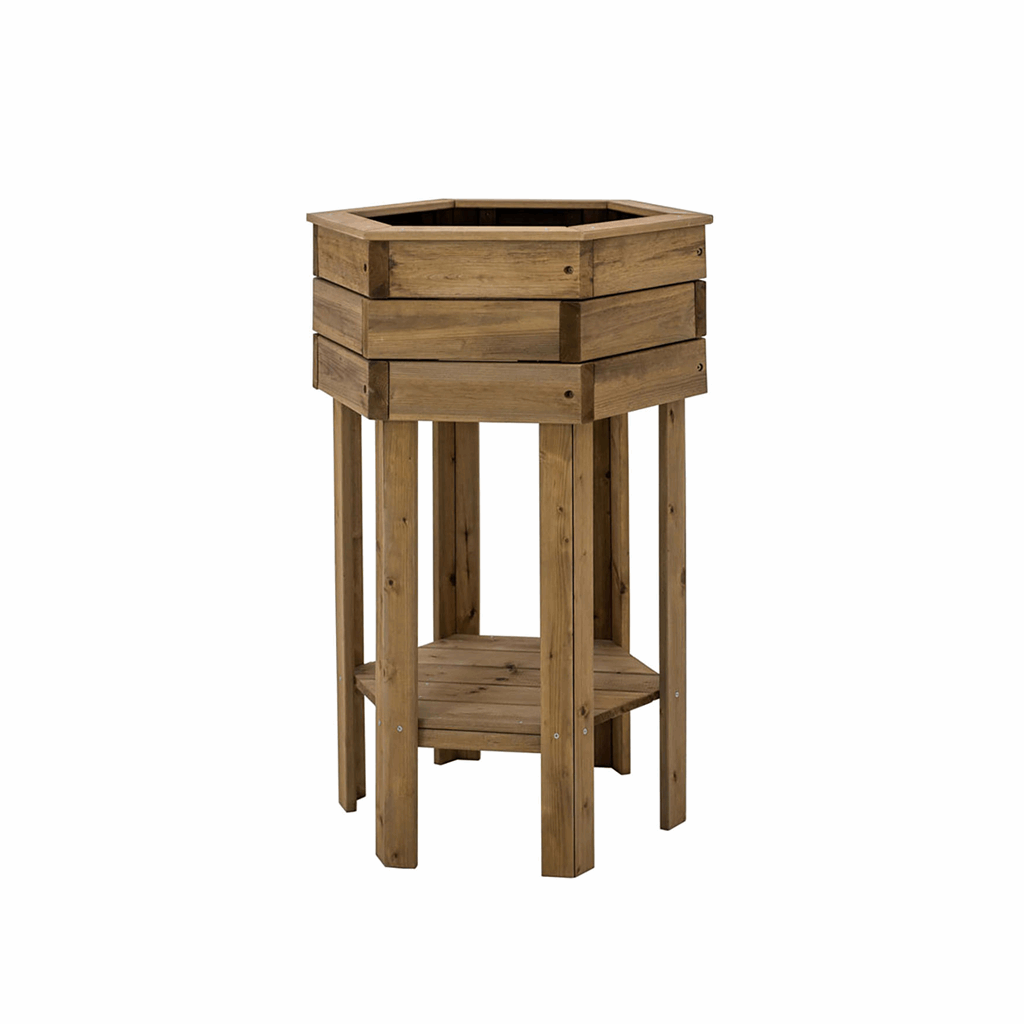 No need to bend down to tend to flowers and plants with this 37.8″ high Hexagonal Raised Bed! Made in Europe of pine and spruce wood harvested from environmentally responsible FSC-certified forests. This Raised Bed is treated for protection against decay and wood rot with linseed oil. 22.8″L x 26.5″W x 38″H 37lbs. 90lb capacity. Flower Box size: 22.8″L x 26.5″W x 11″H. Flower Box Inside Dimensions: 20.5″L x 24″W x 9″Deep