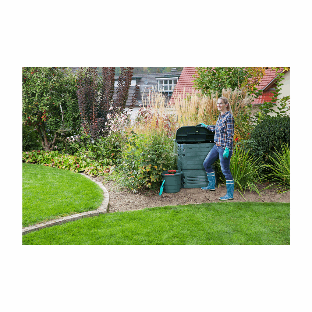 Turns kitchen waste into rich compost. Made from Thermolen which keeps heat inside to accelerate composting. Easy fill – flip up two part lid. 39.3″L x 39.3″W x 39.3″H 46.2lbs 240 Gal.