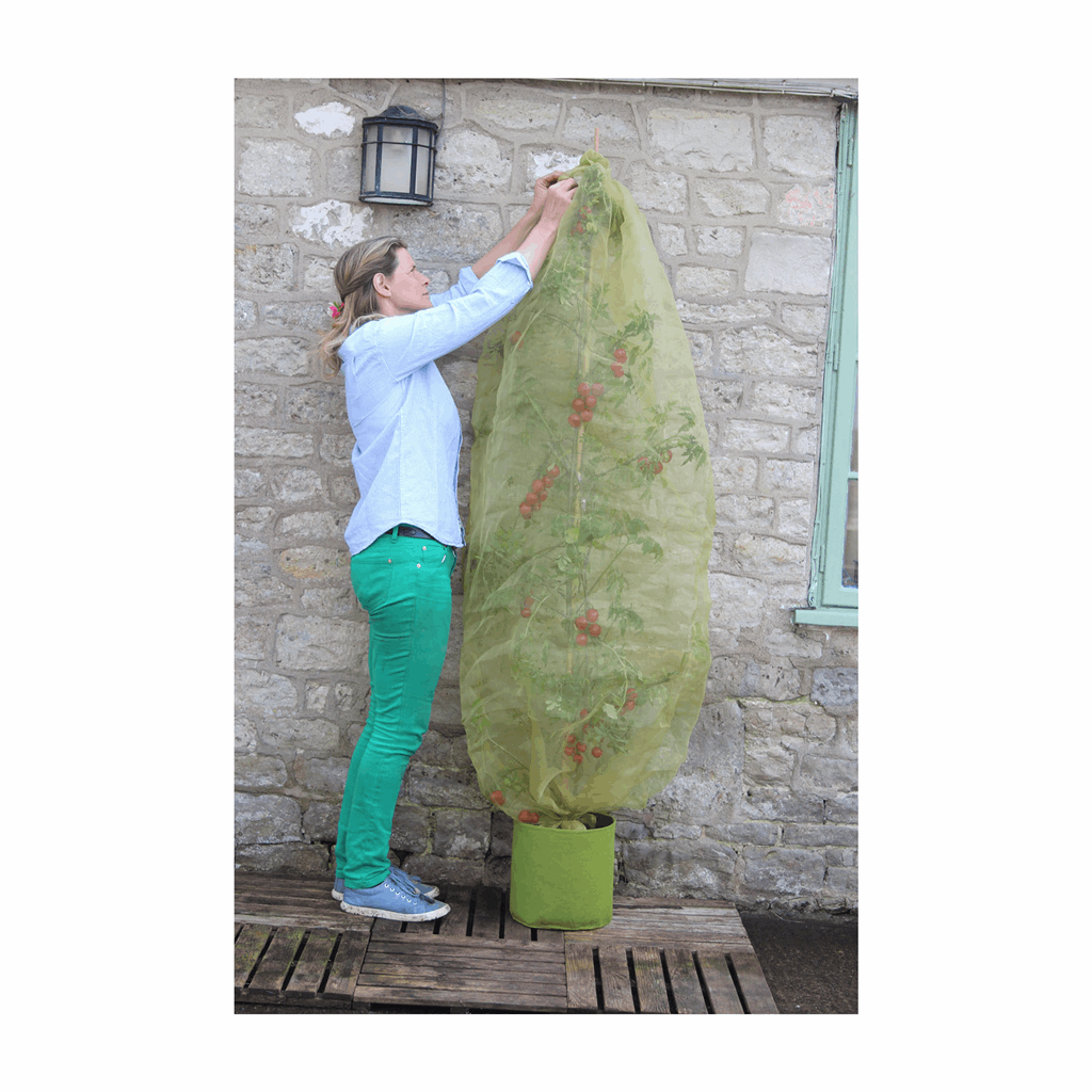 The Micromesh Tomato Tubes are an organic pest and weather protection sleeve with ultra-fine 0.6mm micromesh netting. These tubes can be supported with canes not included and secured at the top with wire ties included. Pack of 1. Product size- 6′ 7″L x 1 ‘11.5″D 0.75 lbs. Pack: 11.8″W x 1.2″D x 16.5″H