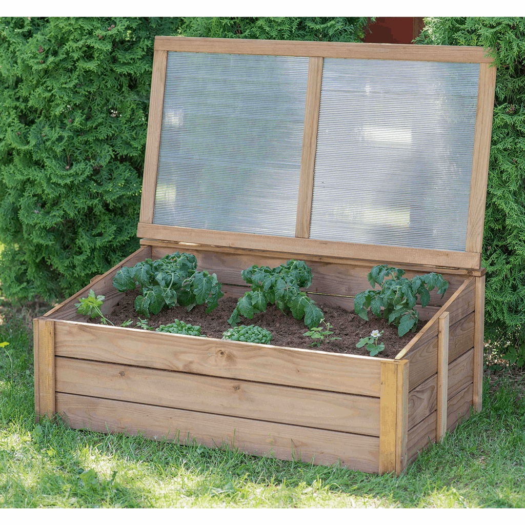 Ideal to nurture seedlings outdoors and protect plants from the elements. Hinge to prop the roof open while working in the frame. Polycarbonate roof. Treated for protection against wood rot and decay. Treat annually to prolong appearance and strength. 39.4″W x 23.6″D x 15.4″H 22 Lbs. Ships flat packed with clear assembly instructions.